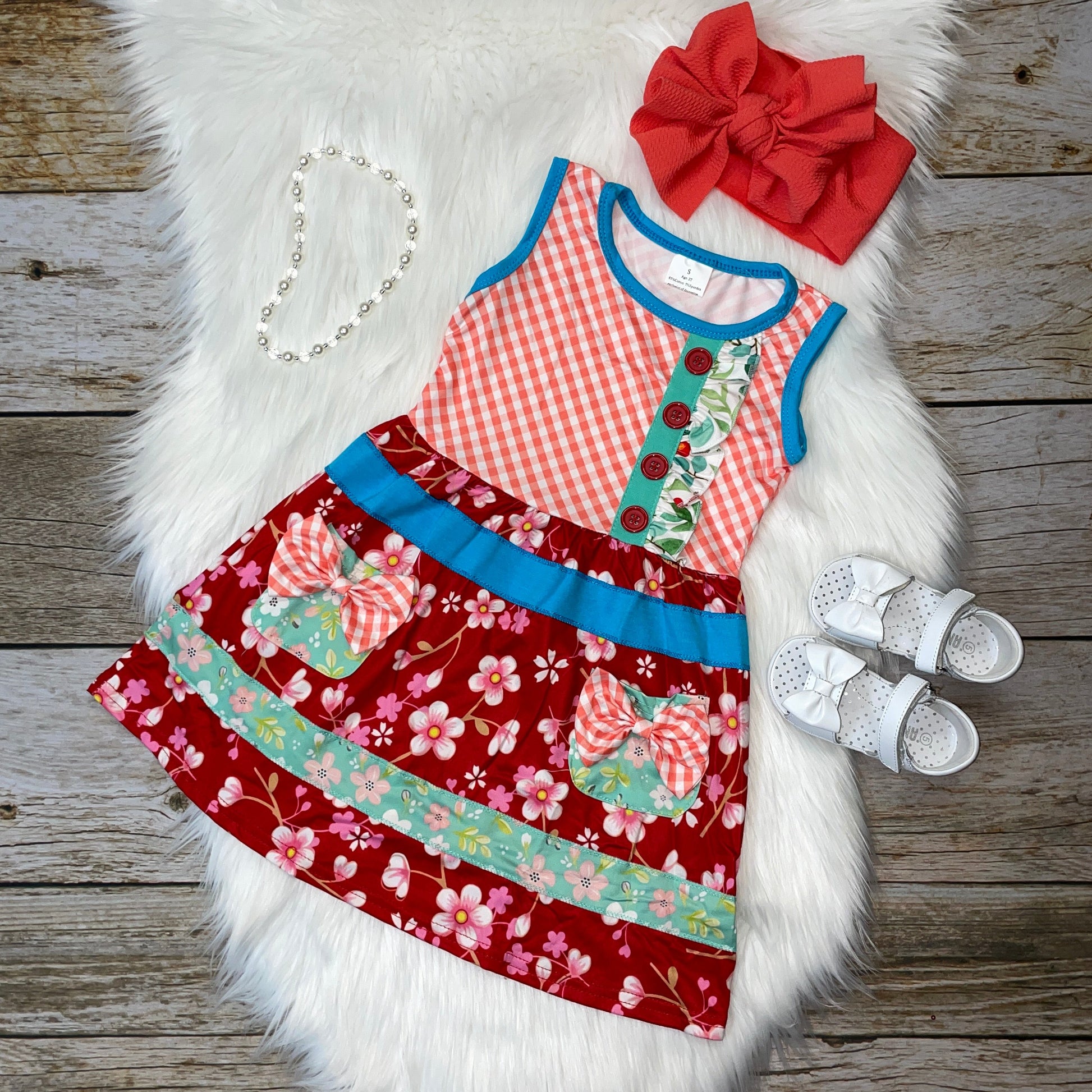 Cherry Blossom Checkered Sleeveless Dress