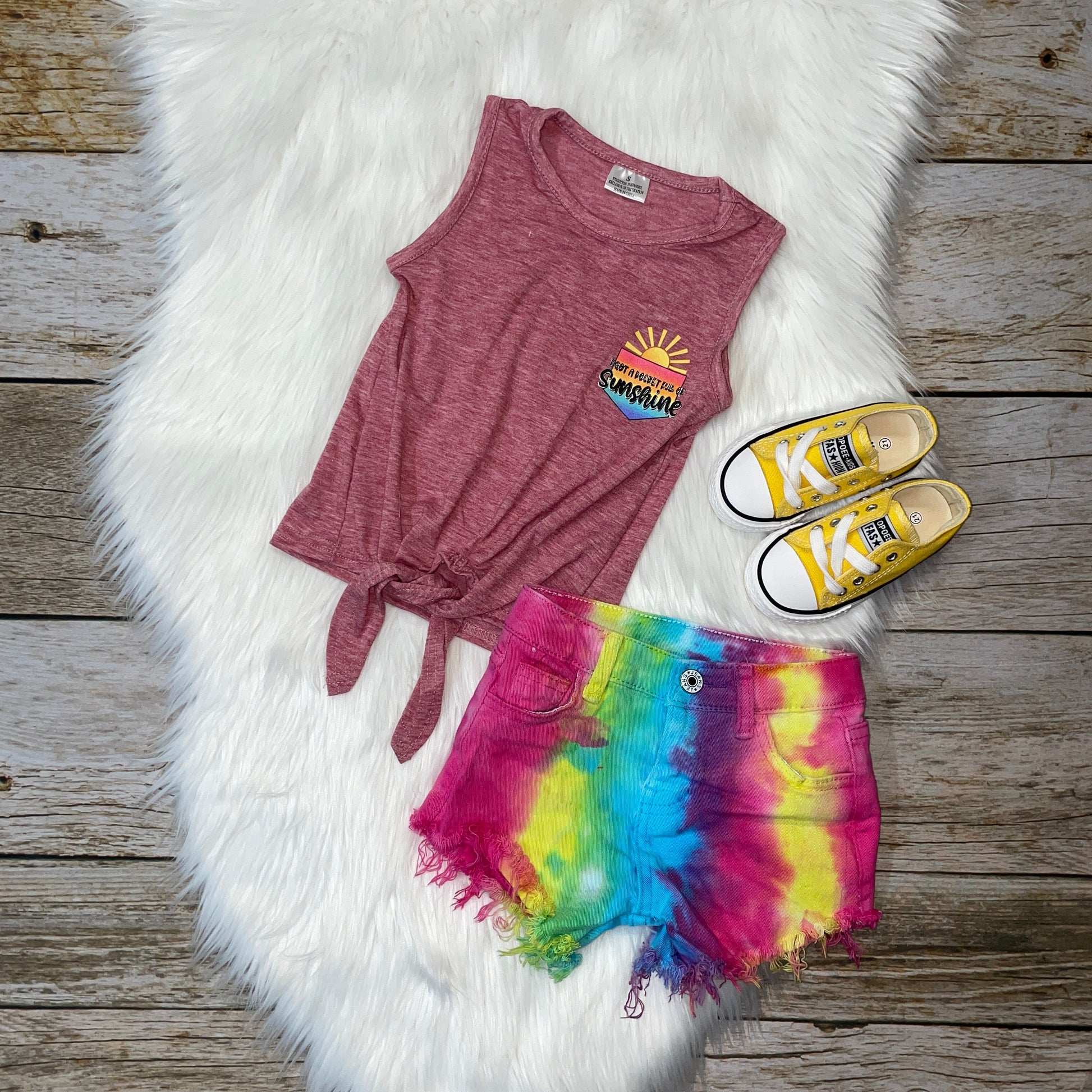 Distressed Tie Dye Denim Shorts & Summer Tie Tank