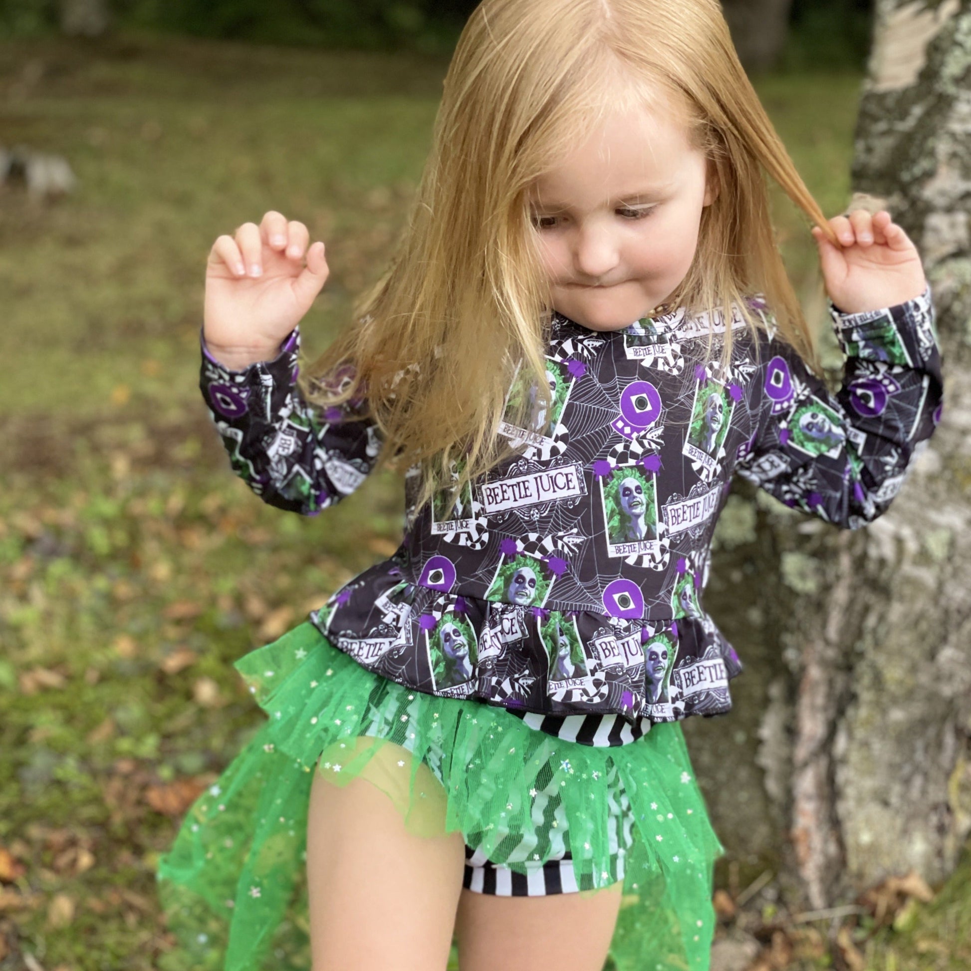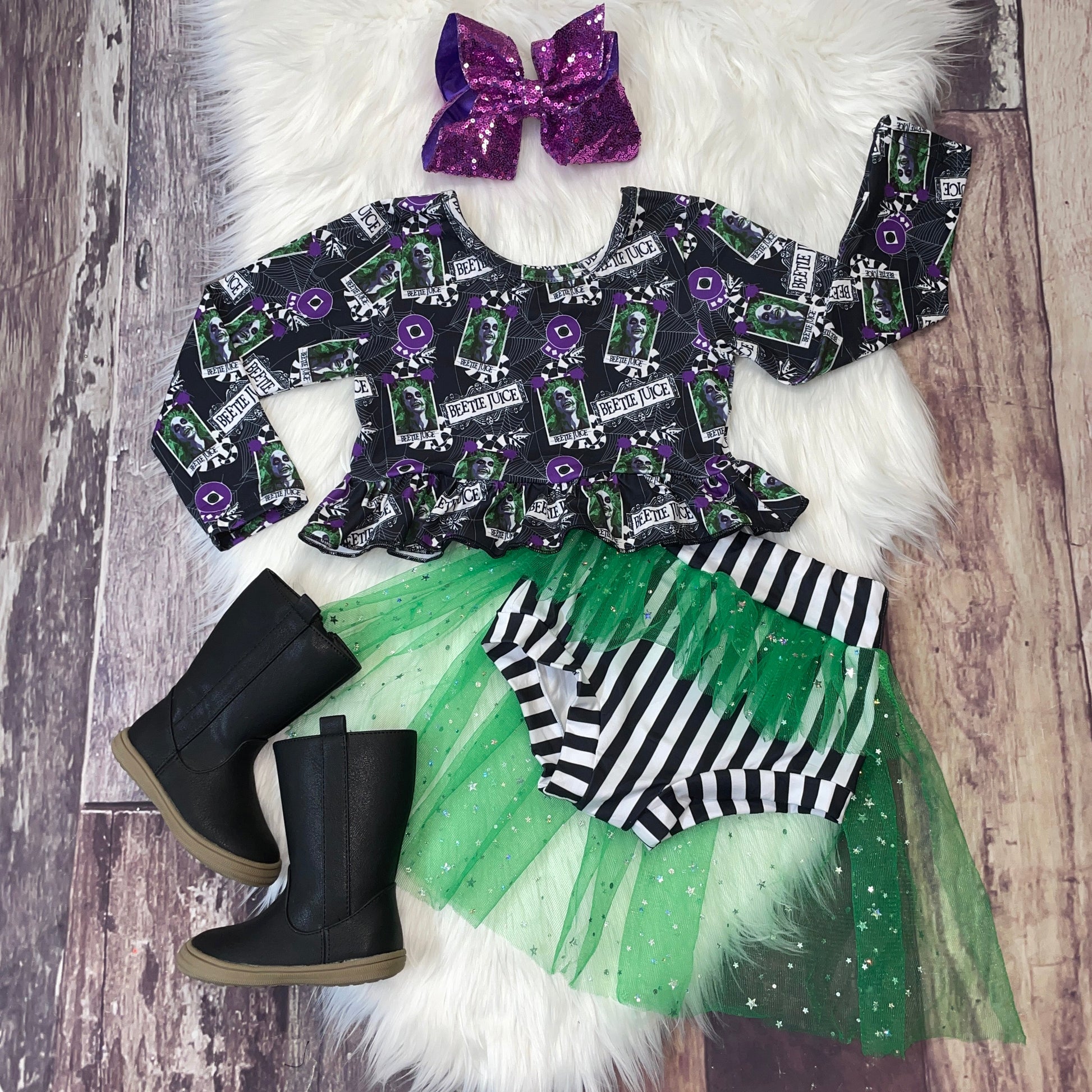 Halloween Theme Ruffle Tulle Bummie Set - Purple & Green