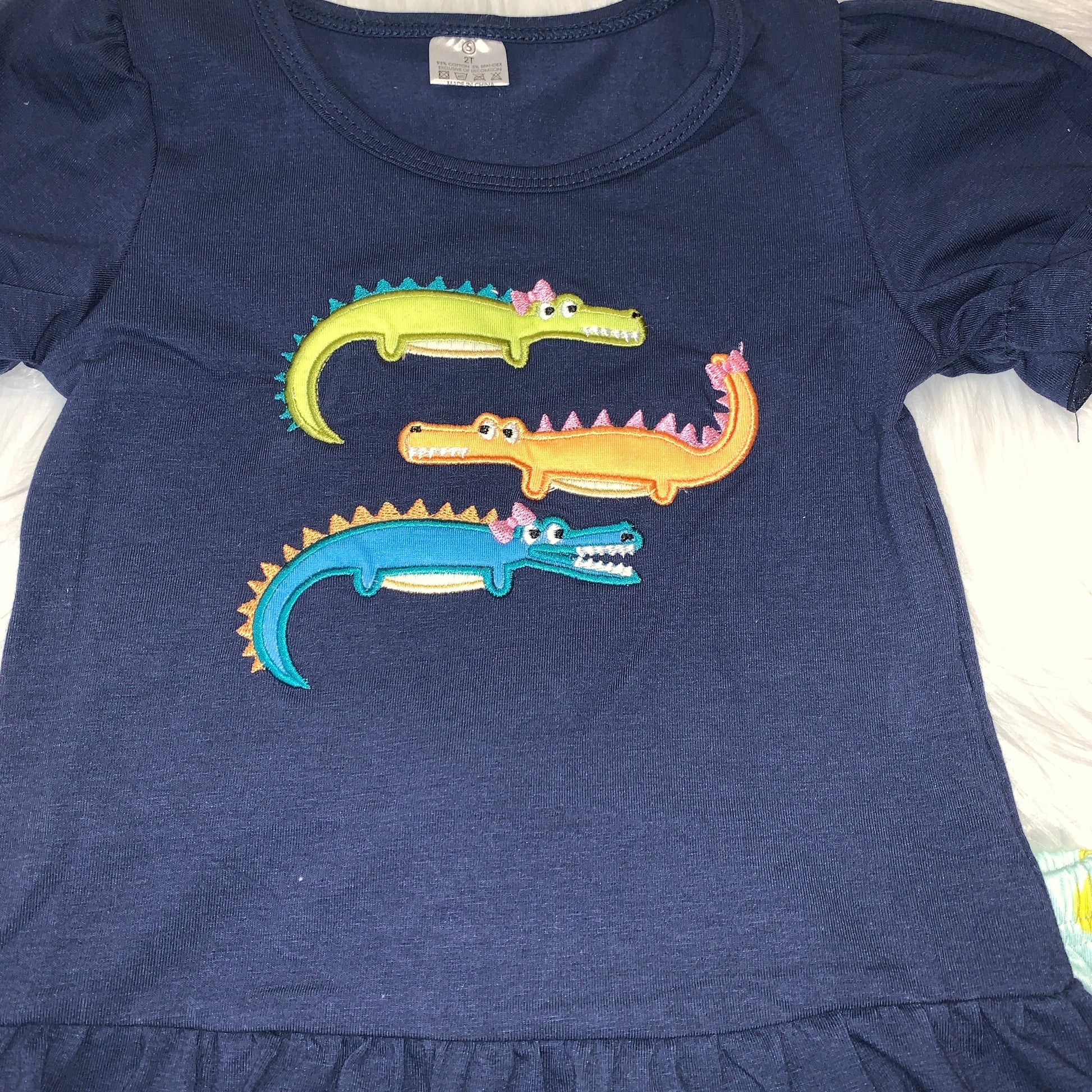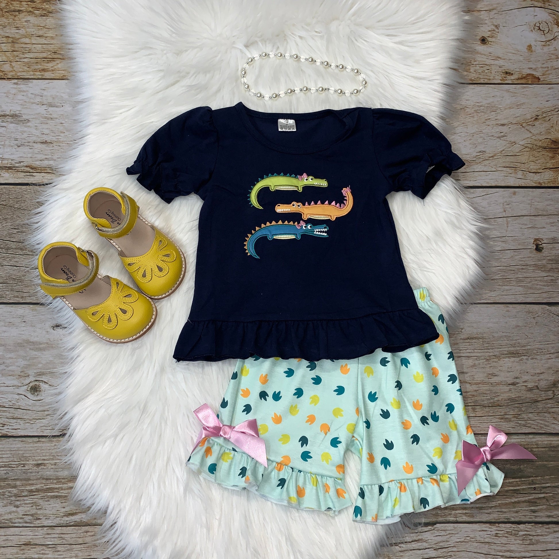 Navy Embroidered Crocodile Ruffle Top & Ruffle Short Set