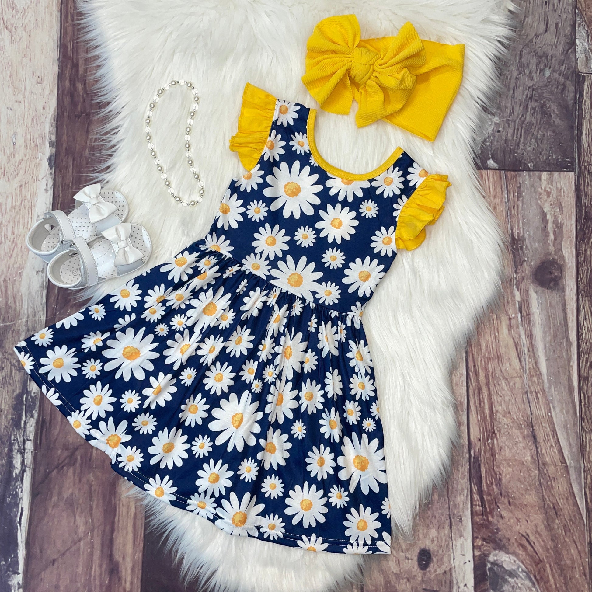 Navy & White Floral Daisy Dress