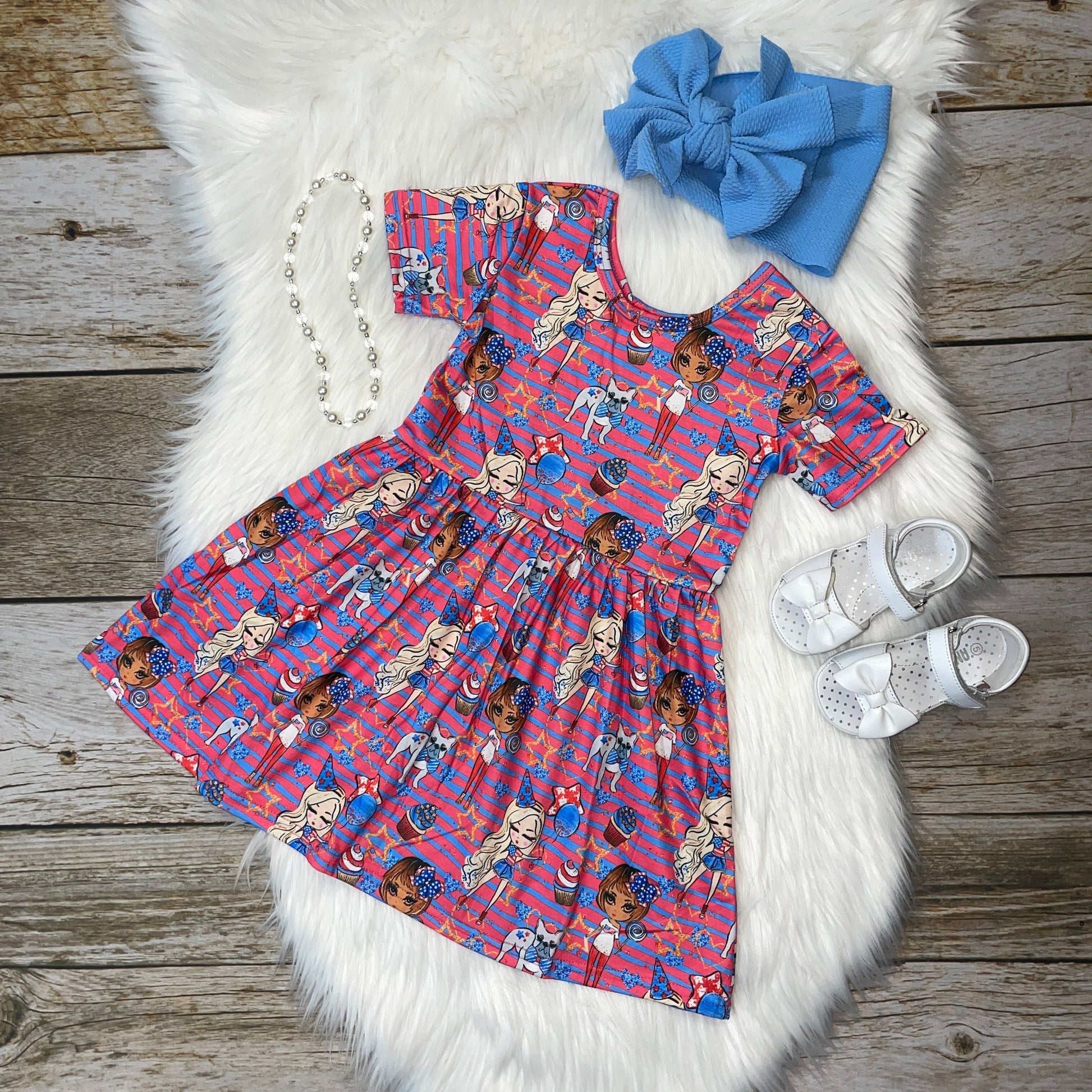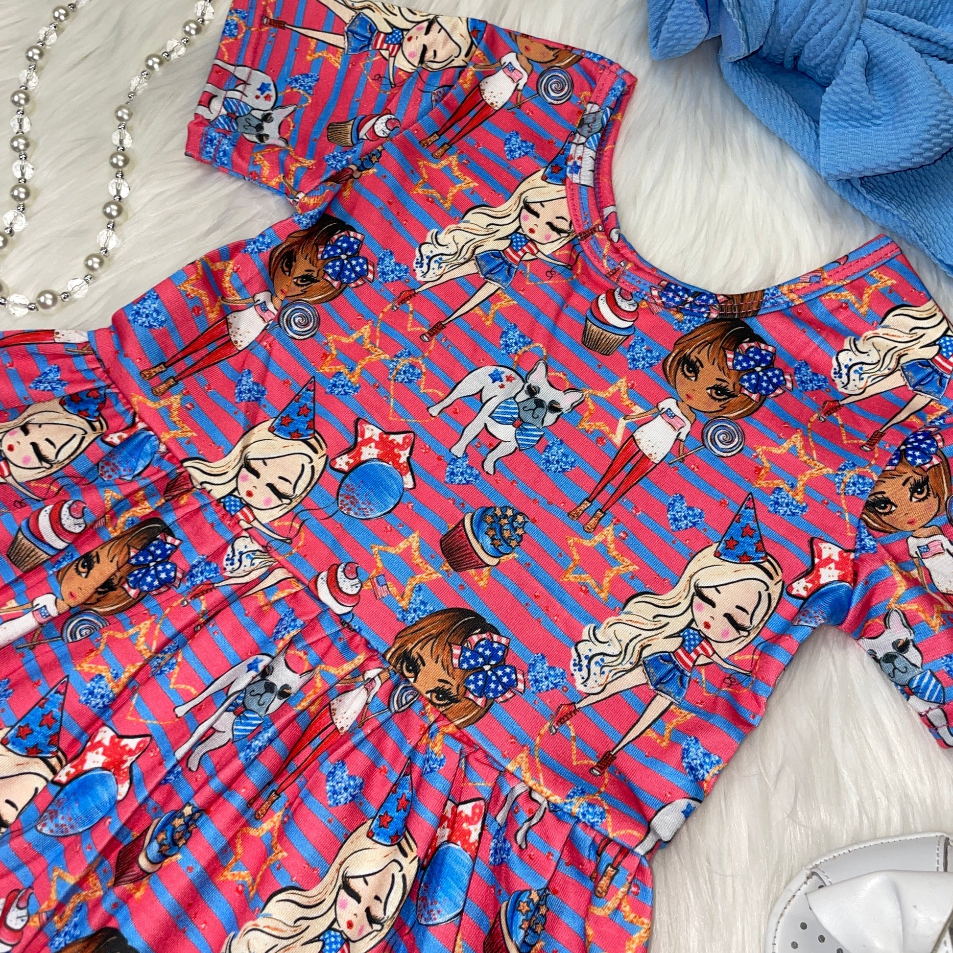 Americana Balloons and Fireworks Printed Flutter Sleeve Dress