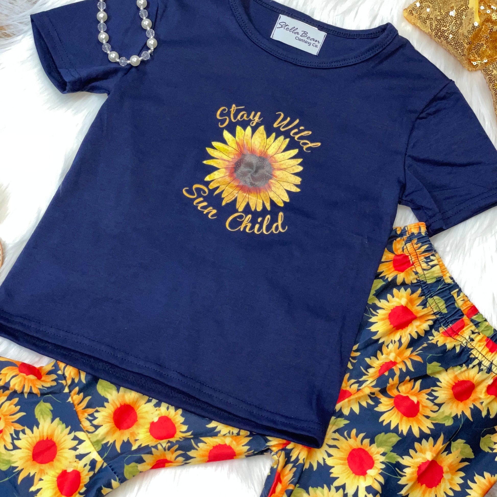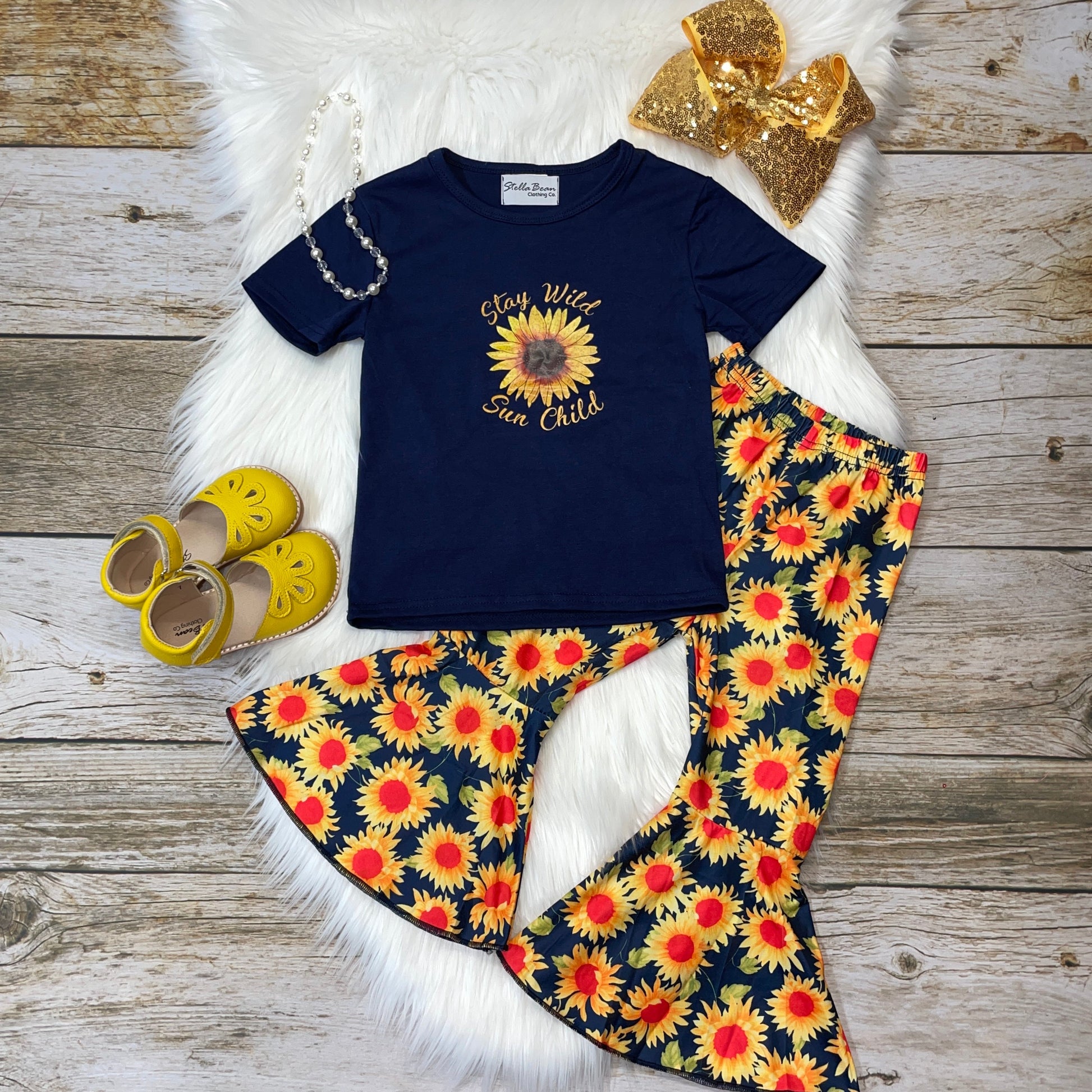 Stay Wild Sun Child Sunflower Graphic Tee and Bell Pants