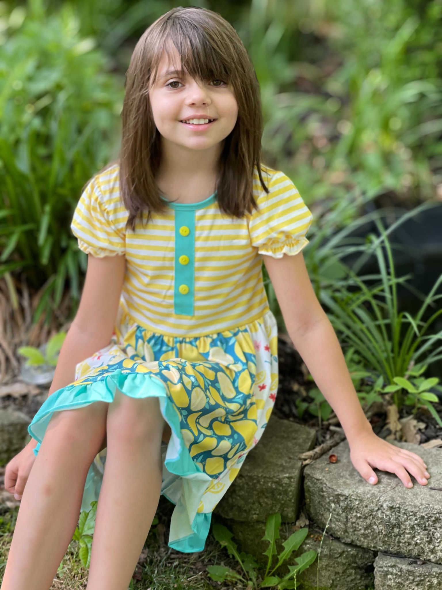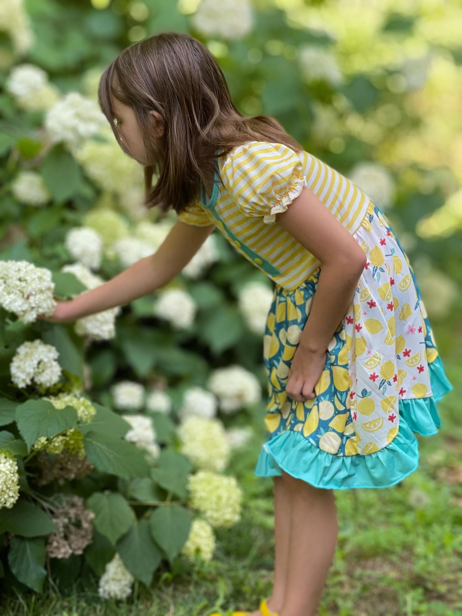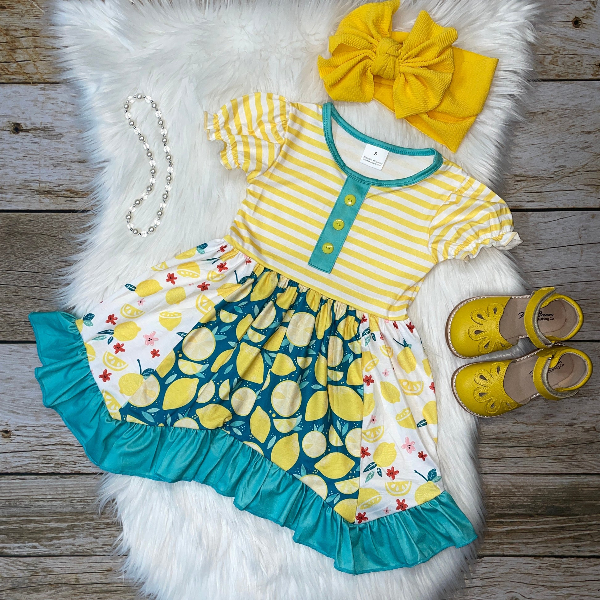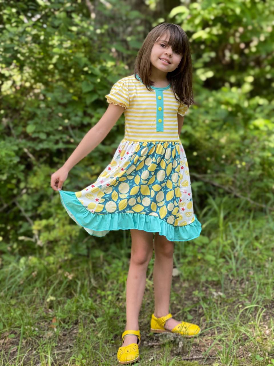Yellow Stripe and Summer Lemon Printed Panel Dress